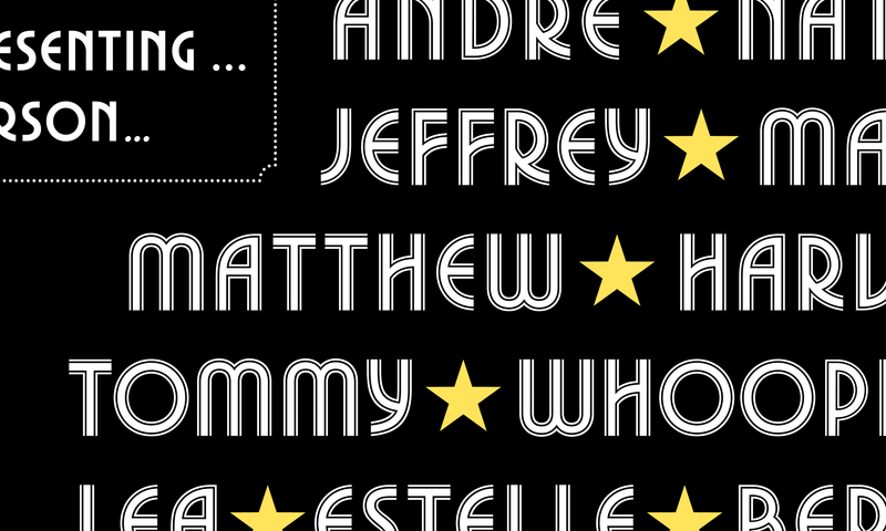 Christian had fun doing the lettering for New York’s special “Yesteryear” issue, which paid tribute to Broadway. With one eye on the art deco-ish type of the original 1975 poster for A Chorus Line and the other on his studio display—tight deadline, and no time to dig through the library and trace the type’s origins—Christian worked up a full inline alphabet to use throughout the issue, along with a secondary solid version. Only after the issue hit newsstands, when he had a moment to breathe, did Christian realize that the new alphabet in fact owed more to his memory of Michael Chave’s 1969 Marvin than to Roy Sprong’s 1970 Pinto, which is what was used for the Chorus Line poster. Tom Alberty and the team at New York also used Graphik Dot to evoke old-school lightbulb signs.